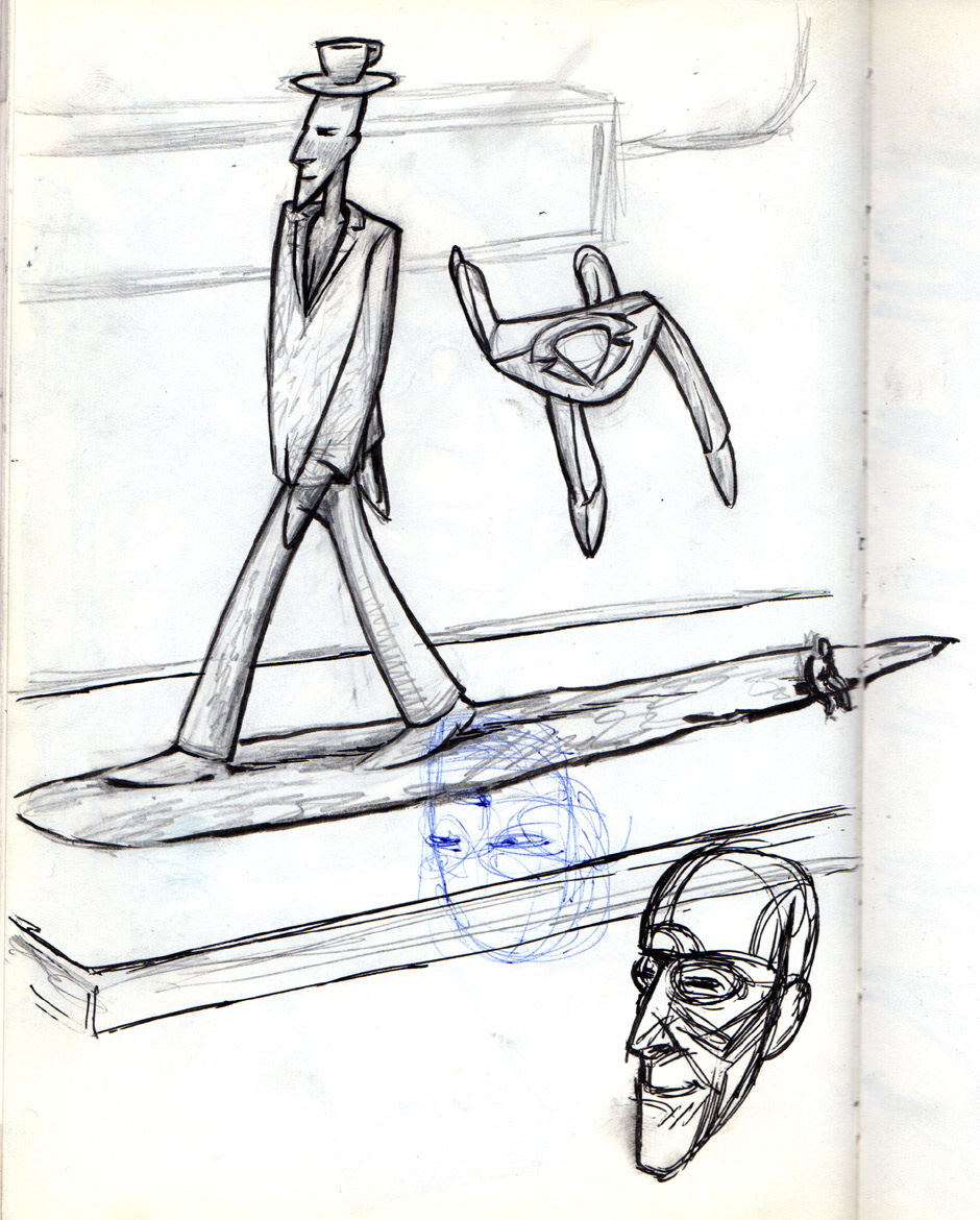 I hadn’t decided too much in advance about any of the visuals aesthetics. There were a few sketches for the soldier, something interesting that came out of an exercise I was doing in a cartooning class at Syn Studio.