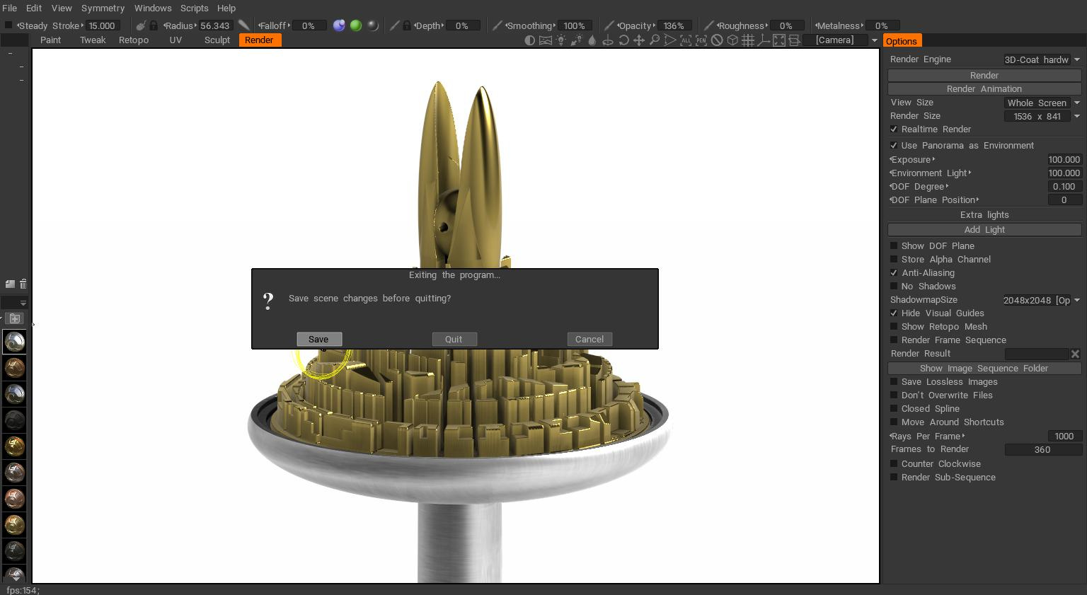 I’ve explored making CGI models as refrence guides for other comics, taking a course in 3d Coat I got a fair bit done on one for the city in Pin City [in Revolver One] before the program froze up, and crashed not letting me save the work, just this last screen grab of it before poof.