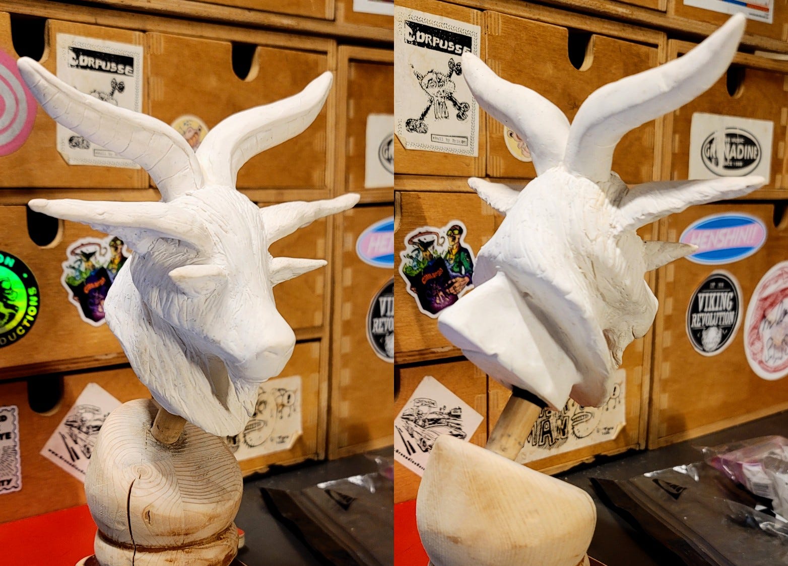I need to get some more stands, I had a couple from the last time I made a bust using air drying clay [see bottom]. But only have one working one attached to the board I mounted this on is left so need a new one for this figure so I can keep using the work stand.