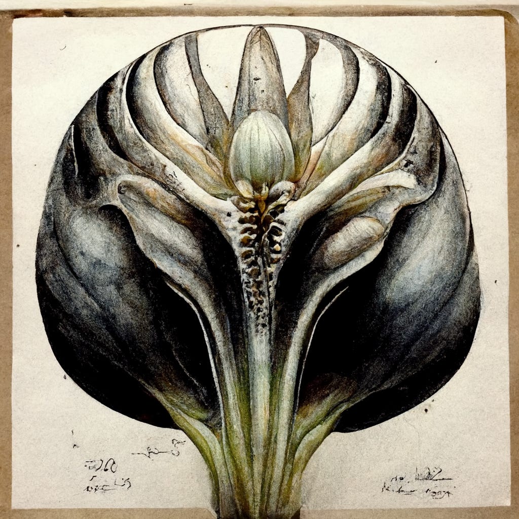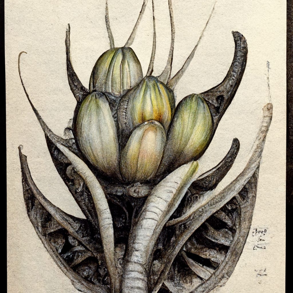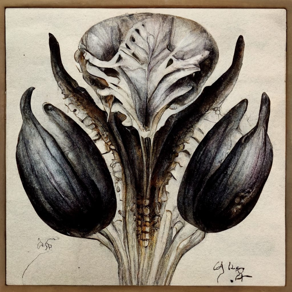 “H.R. Giger draws botanical illustration in pencil and watercolors”