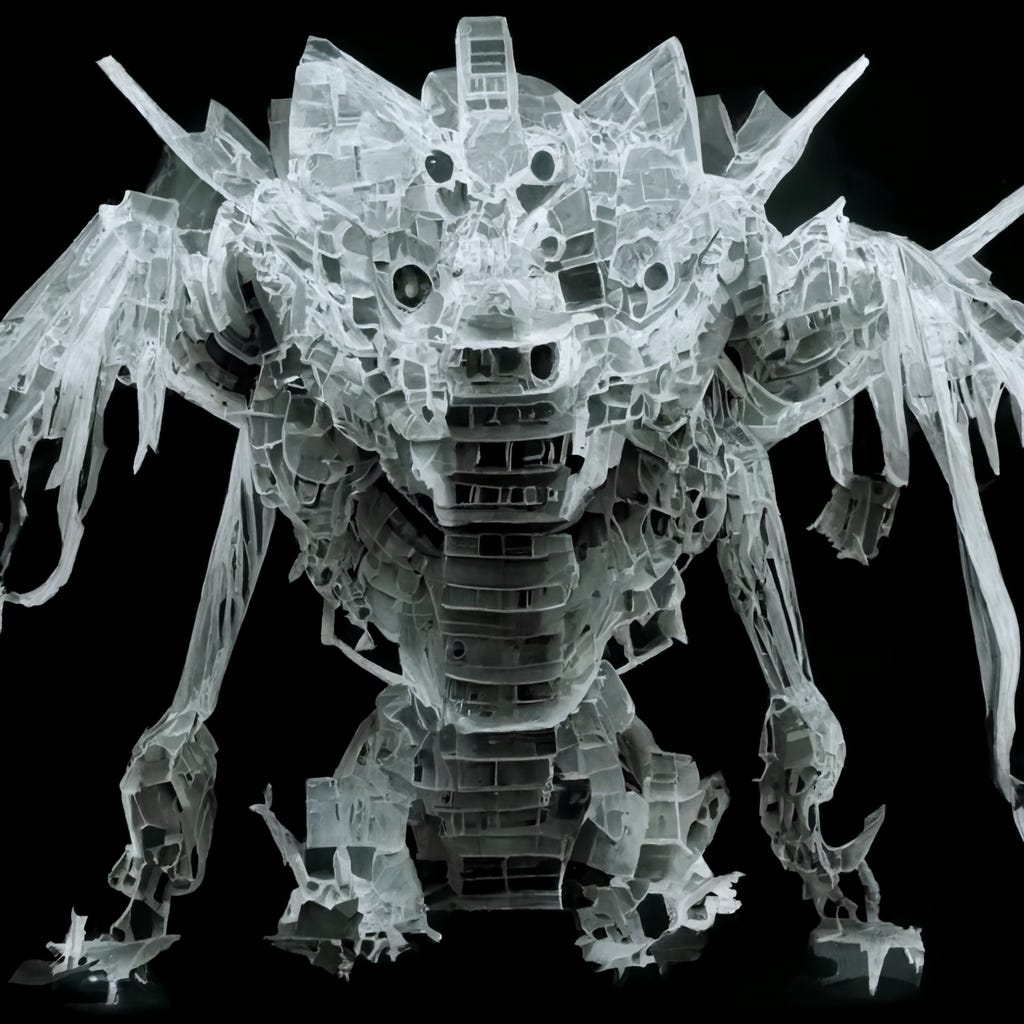 Here’s some of the things I’ve been coming up with thought. These first were from the prompt “Exploded diagram of a robotic Kaiju in negative bluprints cgi” typo included. it didn’t really get ‘exploded diagram’ I think, but otherwise…